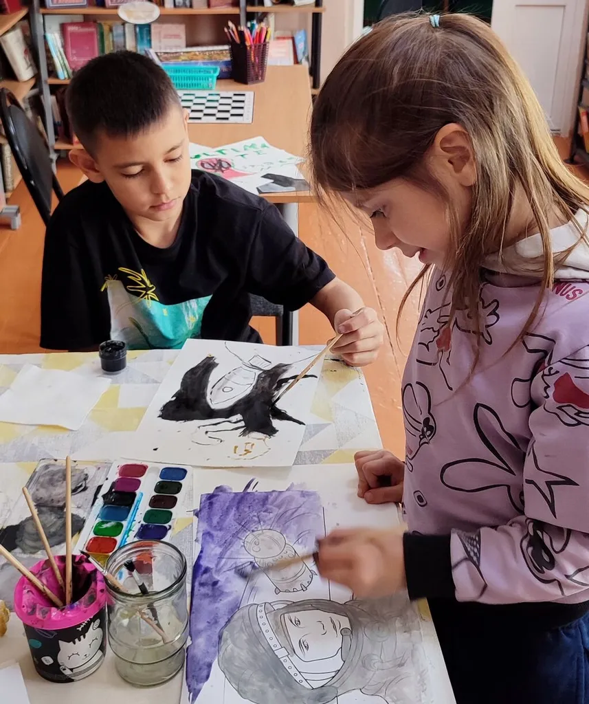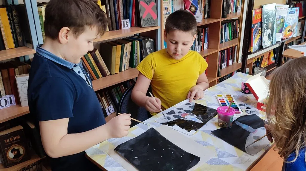 Творческая атмосфера царила повсюду: дети рисовали, создавали поделки, читали стихи и смотрели фильмы, погружаясь в удивительный мир Вселенной.